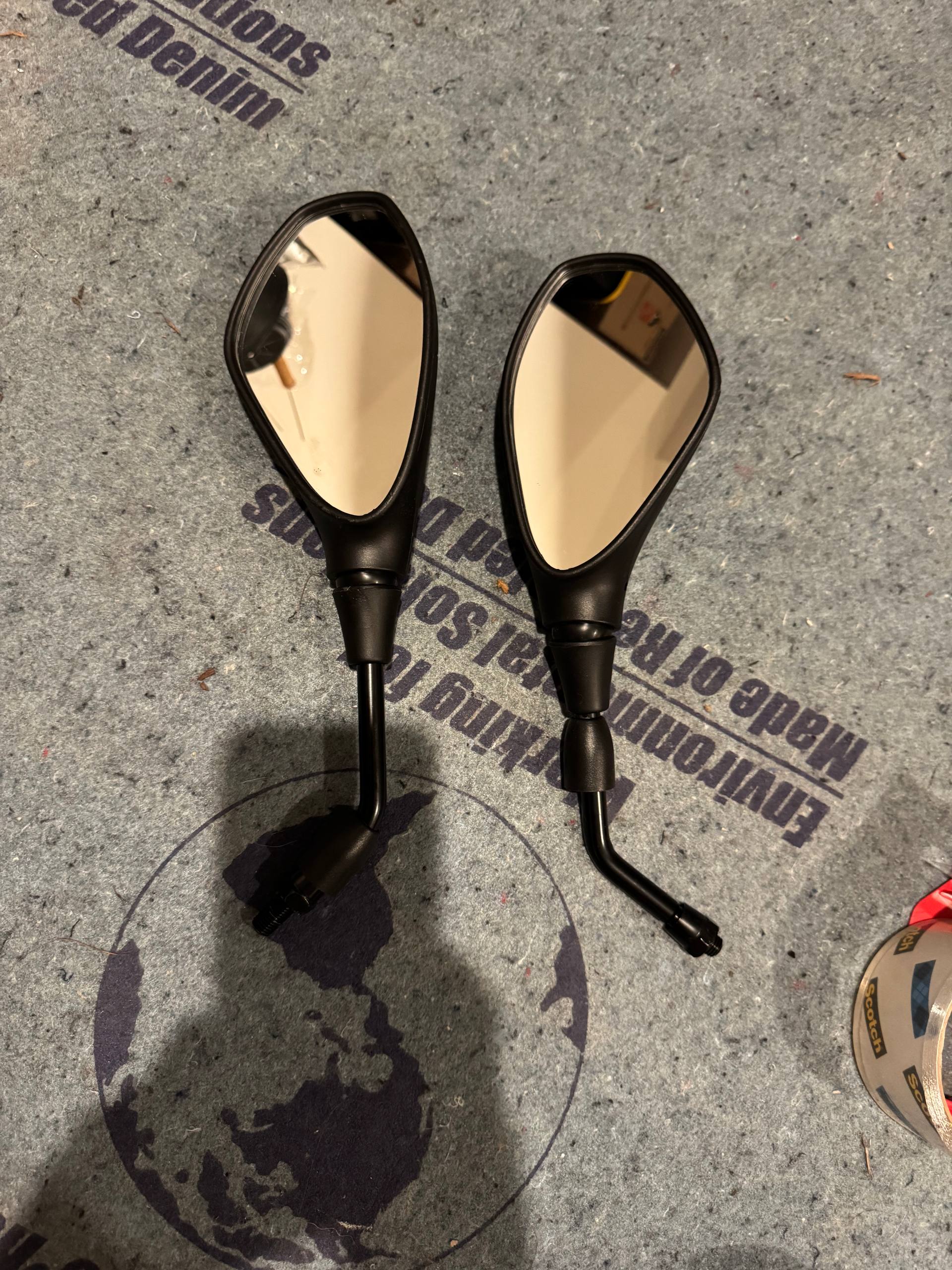 Aftermarket matte black rear view mirror pair for BMW motorcycles. Wide-angle convex glass, adjustable stem. Fits BMW R, F, S, G, K, and C series (2004-2024) including R1200GS, R1250GS, F850GS, F900XR, S1000XR, G310GS, K1200R, R nineT and more. Both mirrors included.