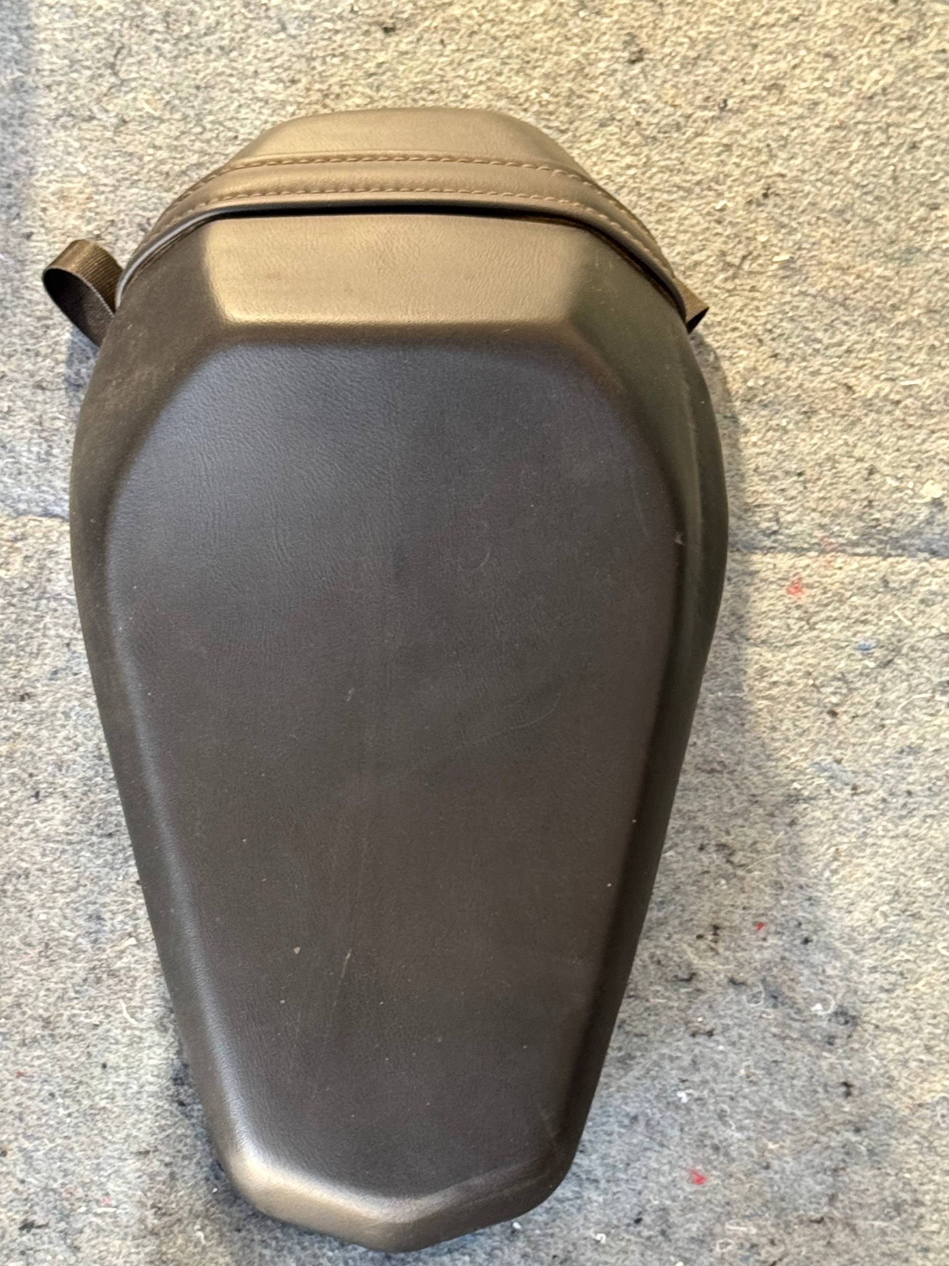 Aftermarket rear passenger seat leather back pad for the 2017-2023 Kawasaki Z900. Black leather, good used condition — no rips or tears. Mounting strap and bracket included. Direct bolt-on fitment.