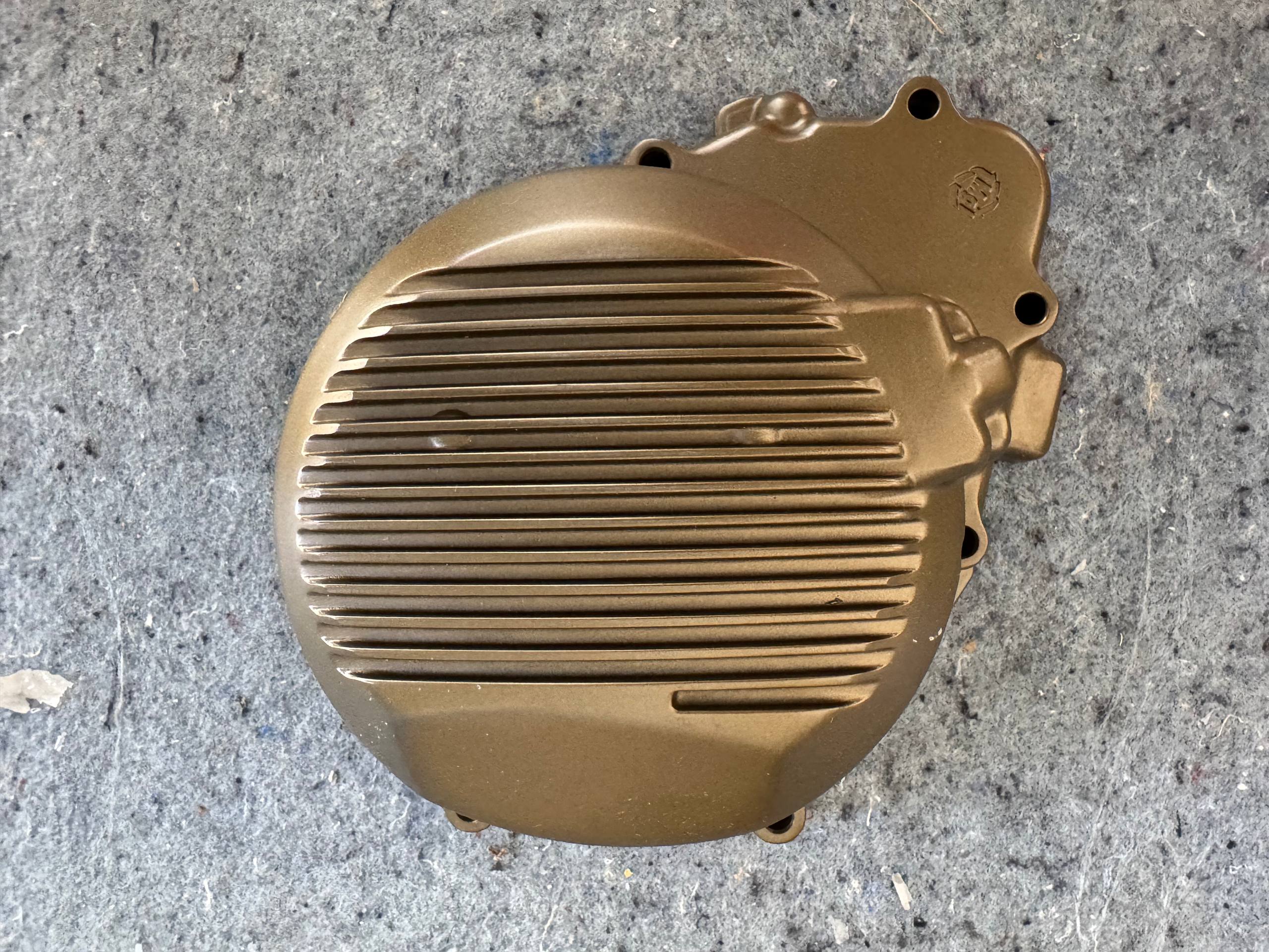 SLMOTO aftermarket engine stator cover (left crankcase cover) for Kawasaki Ninja ZX-6R and ZZR600. Gold anodized billet aluminum finish with cooling fins. Fitment: Kawasaki Ninja ZX6R / ZX-6R 1998-2002, Kawasaki ZZR600 2005-2008. Return item, looks unused and in excellent condition. Direct OEM replacement with upgraded appearance.