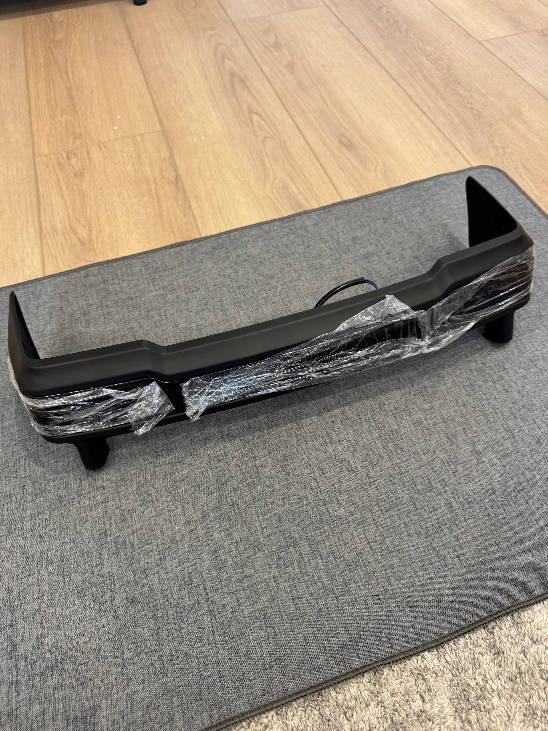 TCMT smoke lens LED tail brake light bar for Harley-Davidson Touring with King Tour Pack. Smoked lens with integrated LED brake and running lights. Pre-wired harness with plug connectors for easy installation. Mounts to the top of the King Tour Pack. Matte black housing with smoke lens for a blacked-out custom look. New, never installed.