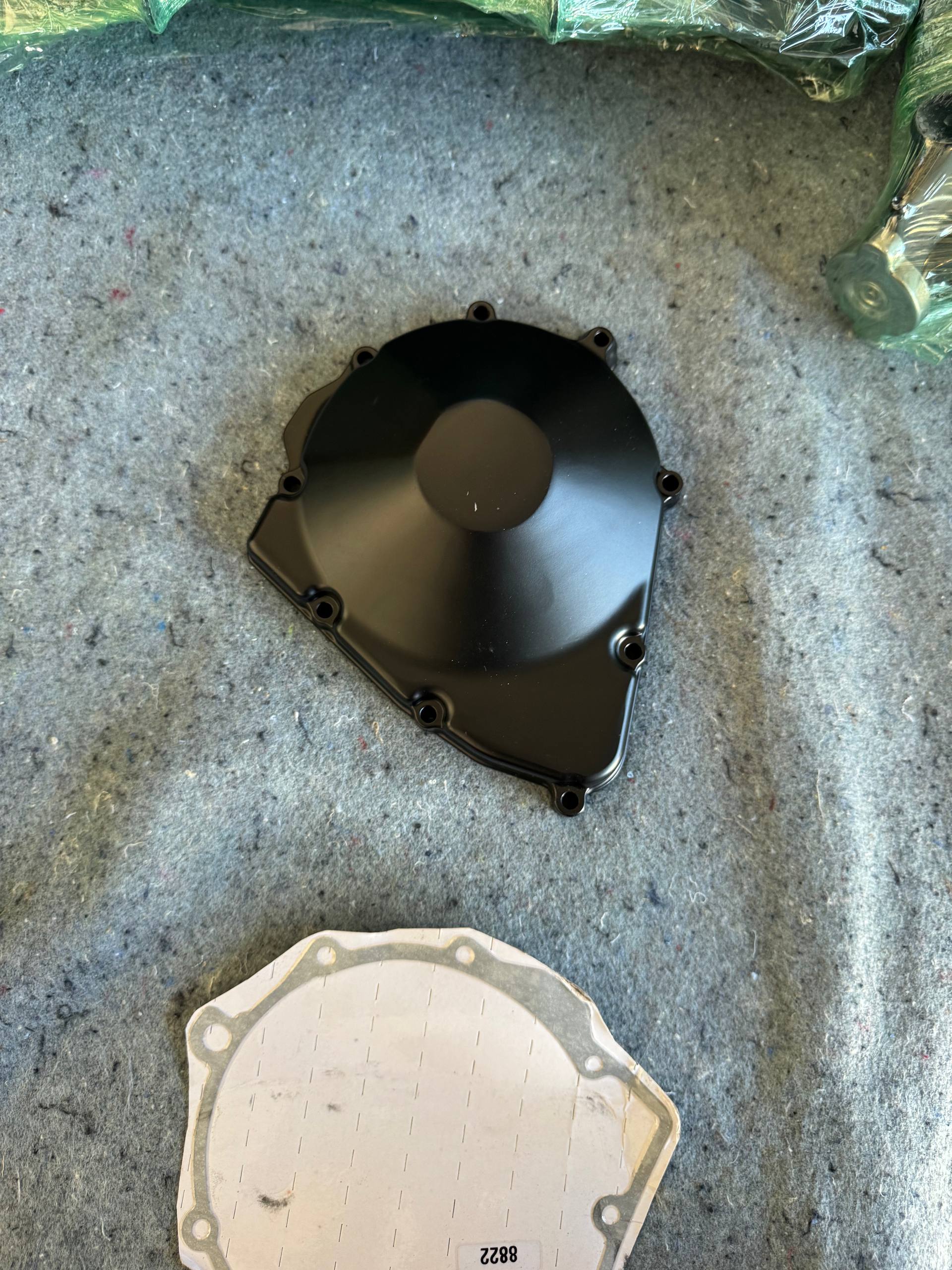Aftermarket matte black stator/generator engine cover with matching gasket for the 2006-2016 Suzuki GSX-R600 and GSX-R750. 8-bolt pattern, direct bolt-on fitment. New, uninstalled. Gasket included — ready to install.